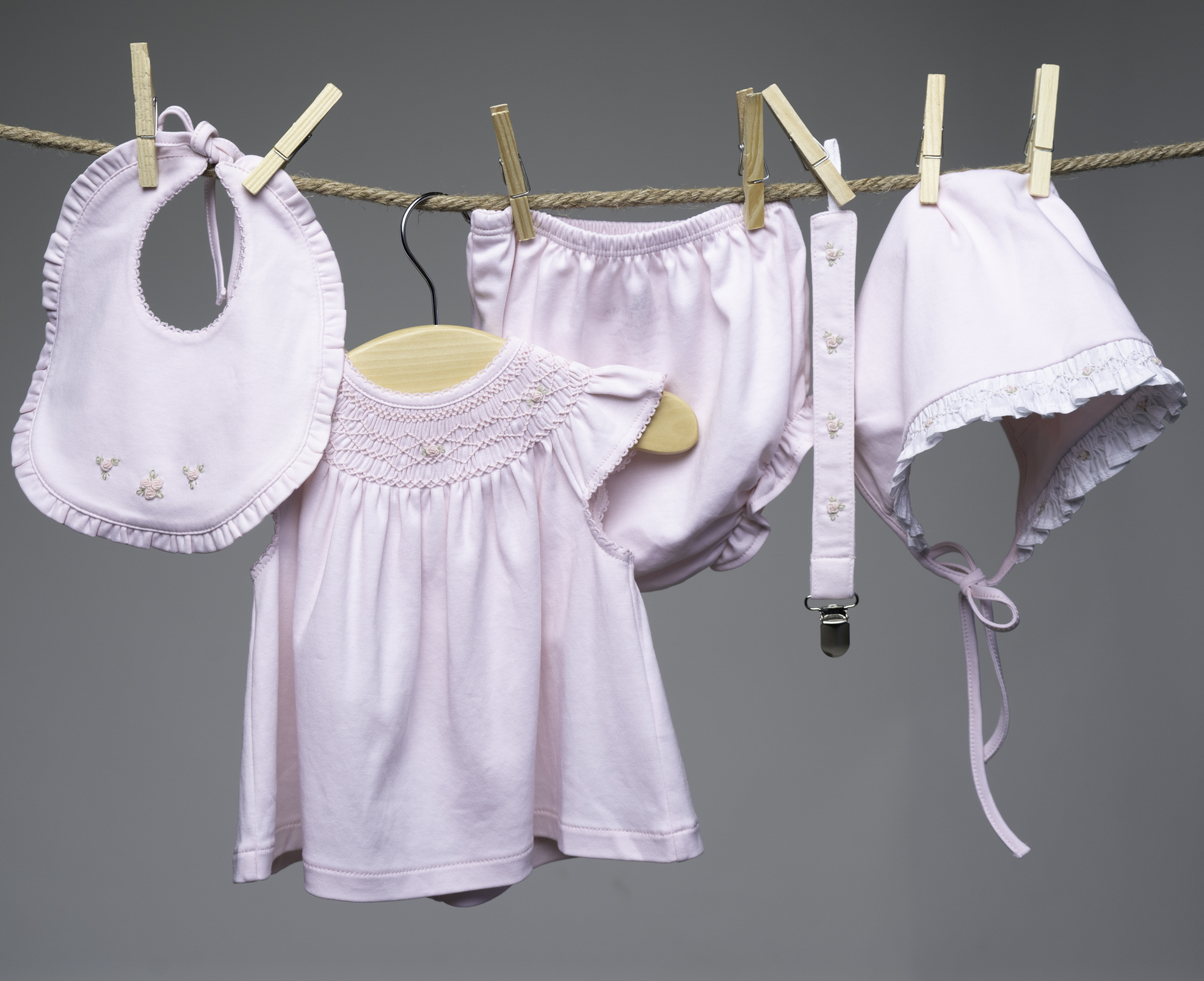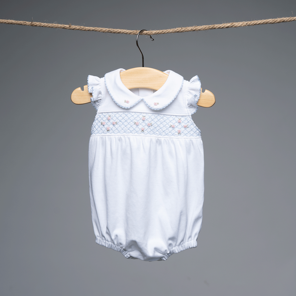 La colección se completa con capota, babero y portachupete a juego, creando un conjunto armonioso y elegante, perfecto tanto para el día a día como para ocasiones especiales. Flores Bordadas viste la infancia con dulzura, tradición y belleza serena, convirtiendo cada prenda en un recuerdo para atesorar.