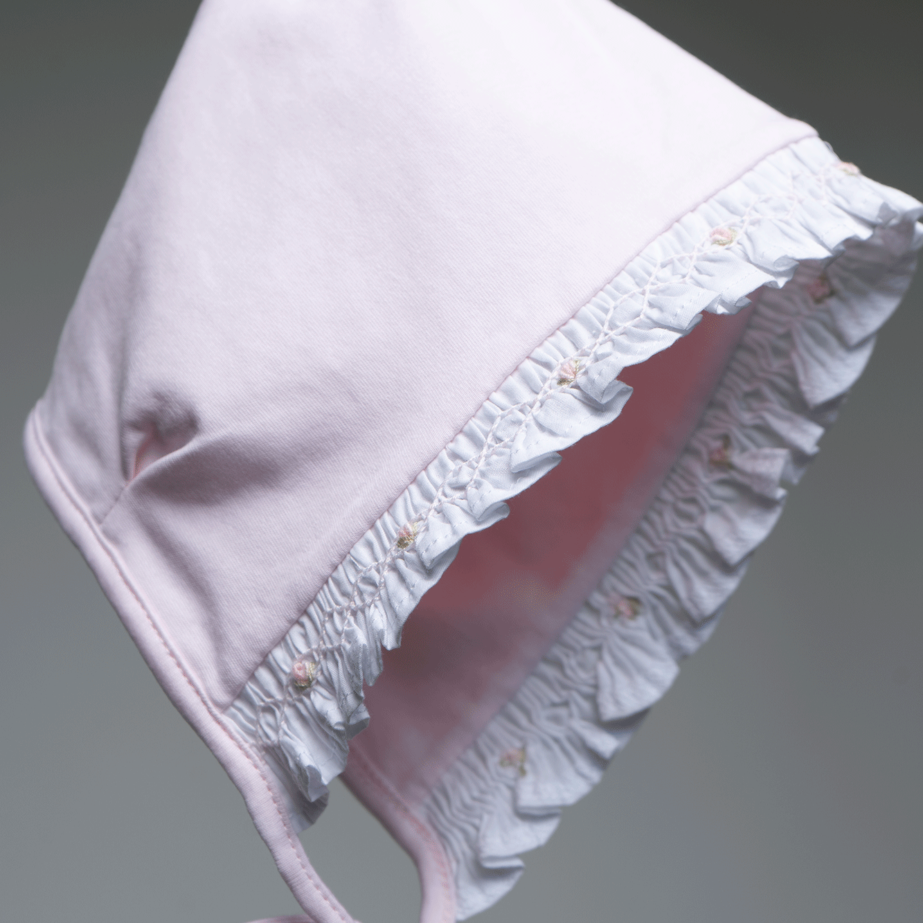 Las prendas se distinguen por sus flores rosadas bordadas a mano, acompañadas de finos acabados en picot, vuelos suaves y cortes clásicos que evocan una estética atemporal. Cada pieza refleja el cuidado por los detalles y el amor por lo artesanal, sello esencial de nuestra marca.