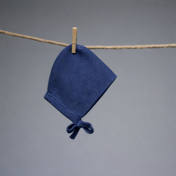 Gorro tejido en azul acero. Confeccionado en Perú.